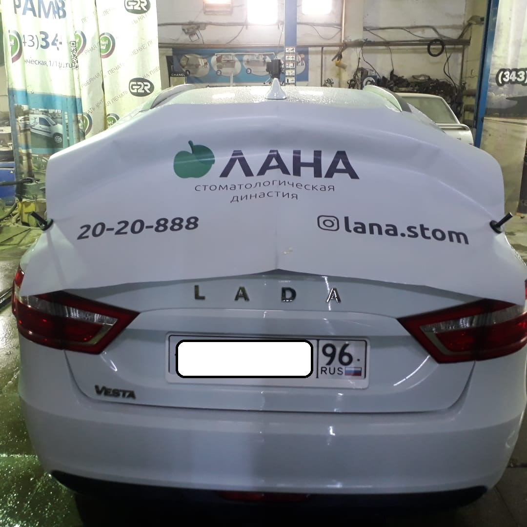 Также ее плюсы в полноцветной печати, целиком закрывает стекло. Можно сделать в цвет автомобиля