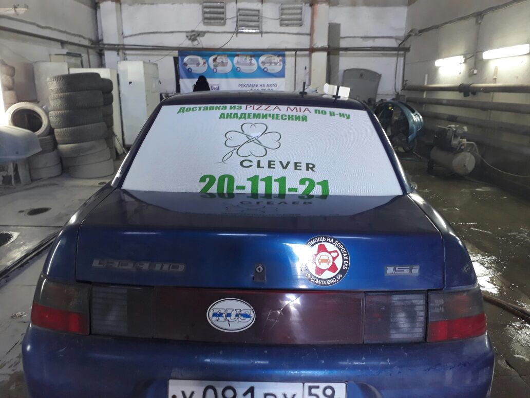 Полноцветная наклейка перфорированная на заднее стекло