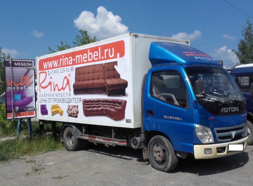 Реклама на автомобиле FOTON, мебель RINA