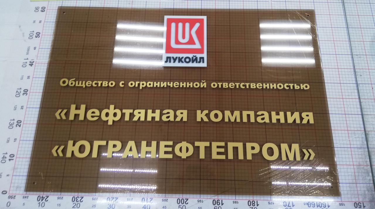 Административная табличка из оргстекла под бронзу, с объемными золотыми буквами