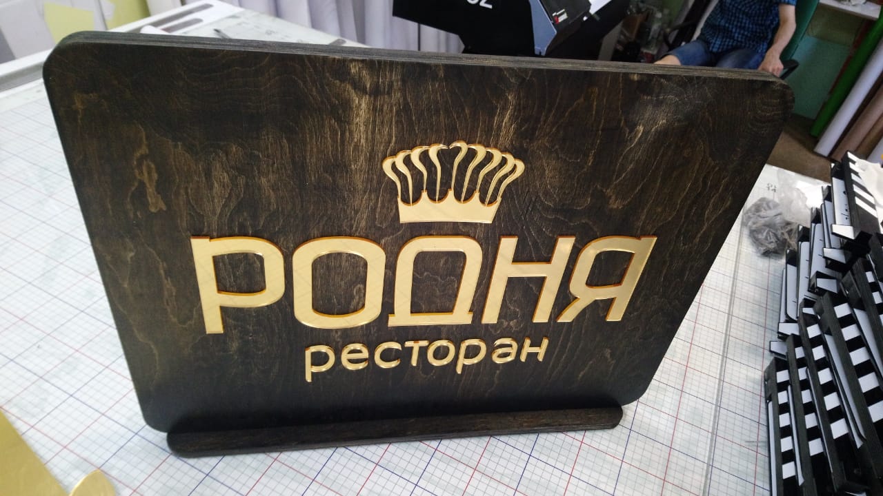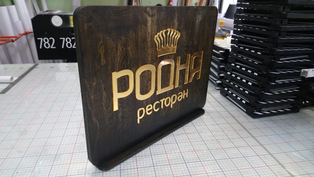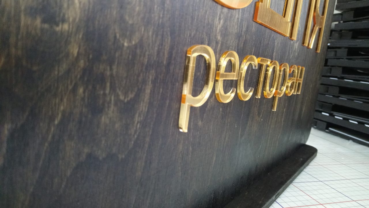 Табличка из дерева и зеркального оргстекла.